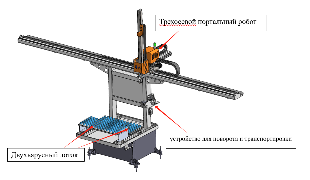 2. Две платформы в верхнем и нижнем слоях бункера могут перемещаться вперед и назад, манипулятор поочередно изымает обрабатываемые продукты с поддона рабочего места захвата.