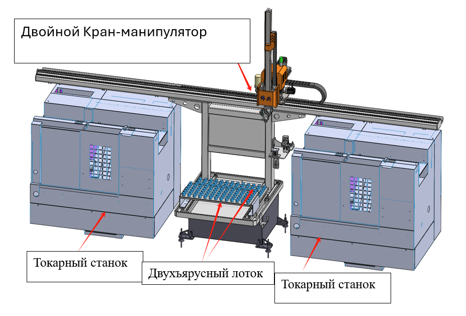 Настоящий проект предназначен для обеспечения одной парой токарных станков с портальными манипуляторами для автоматической обработки деталей на токарном станке с передней и задней шпиндельной бабкой, указанном Заказчиком, модели Dongbu CNC 320KTT;