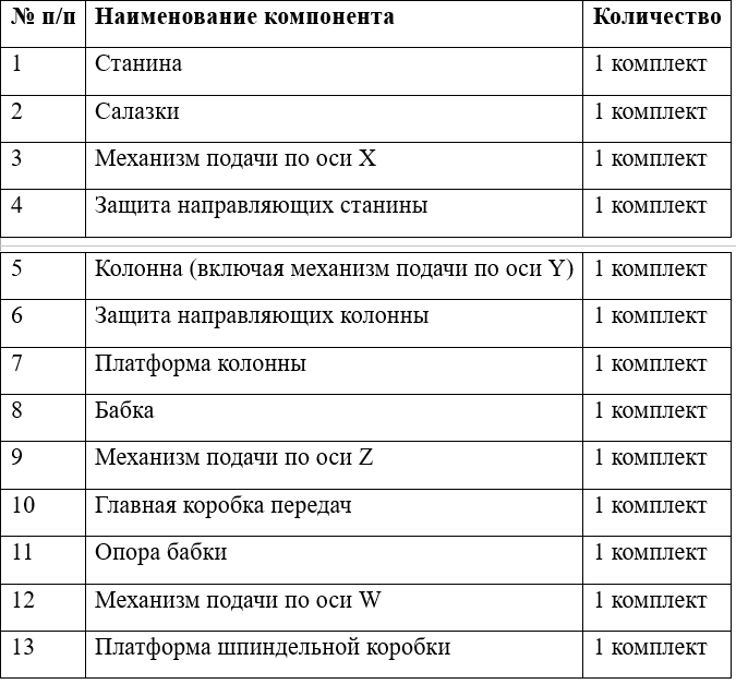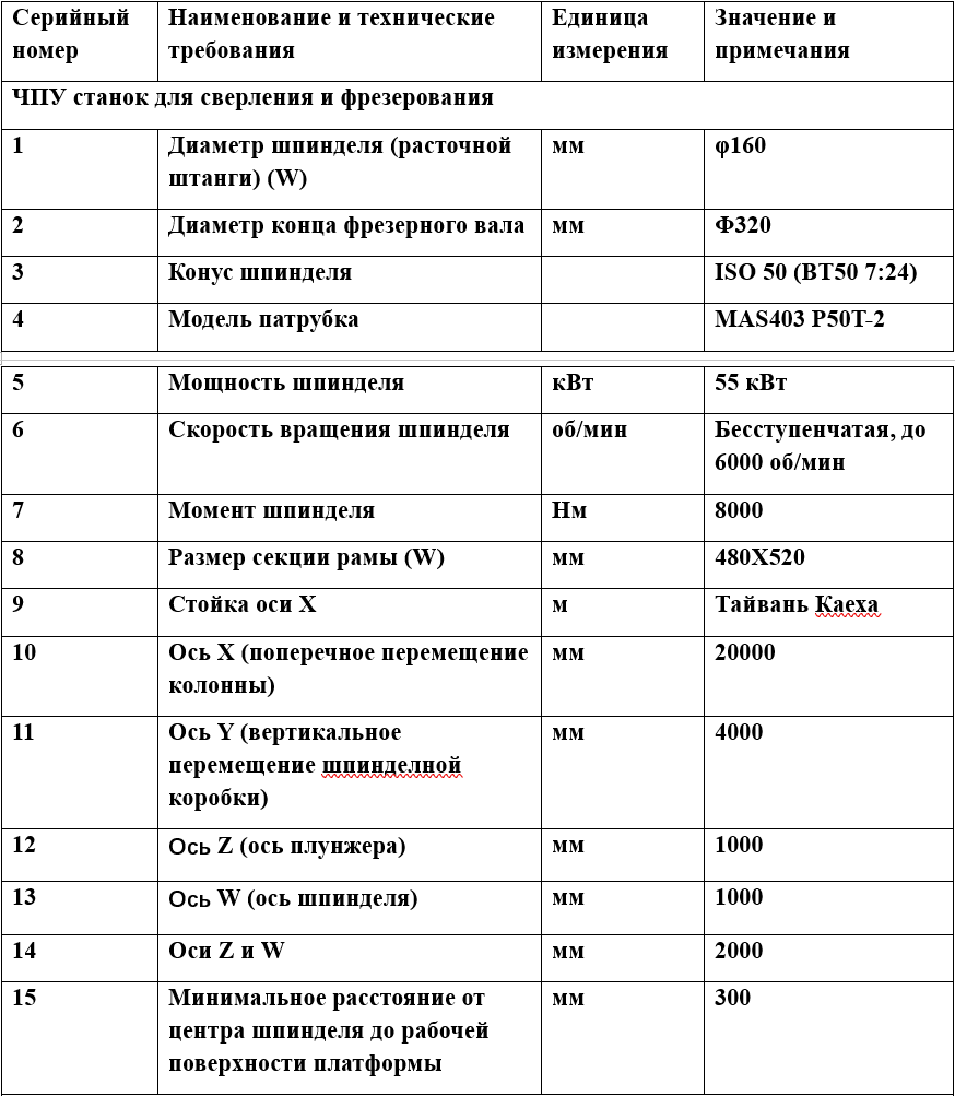 Оборудование представляет собой горизонтально-расточной станок с ЧПУ с подвижной прямоугольной бабкой, установленный по схеме с горизонтальным шпинделем. Прямоугольная бабка перемещается горизонтально внутри замкнутого отверстия шпиндельной коробки; фрезерный шпиндель установлен внутри прямоугольной бабки и приводит в движение расточной шпиндель, который может перемещаться вдоль оси внутри фрезерного шпинделя. Основные компоненты включают колонну, станину, салазки и головку шпиндельной коробки.